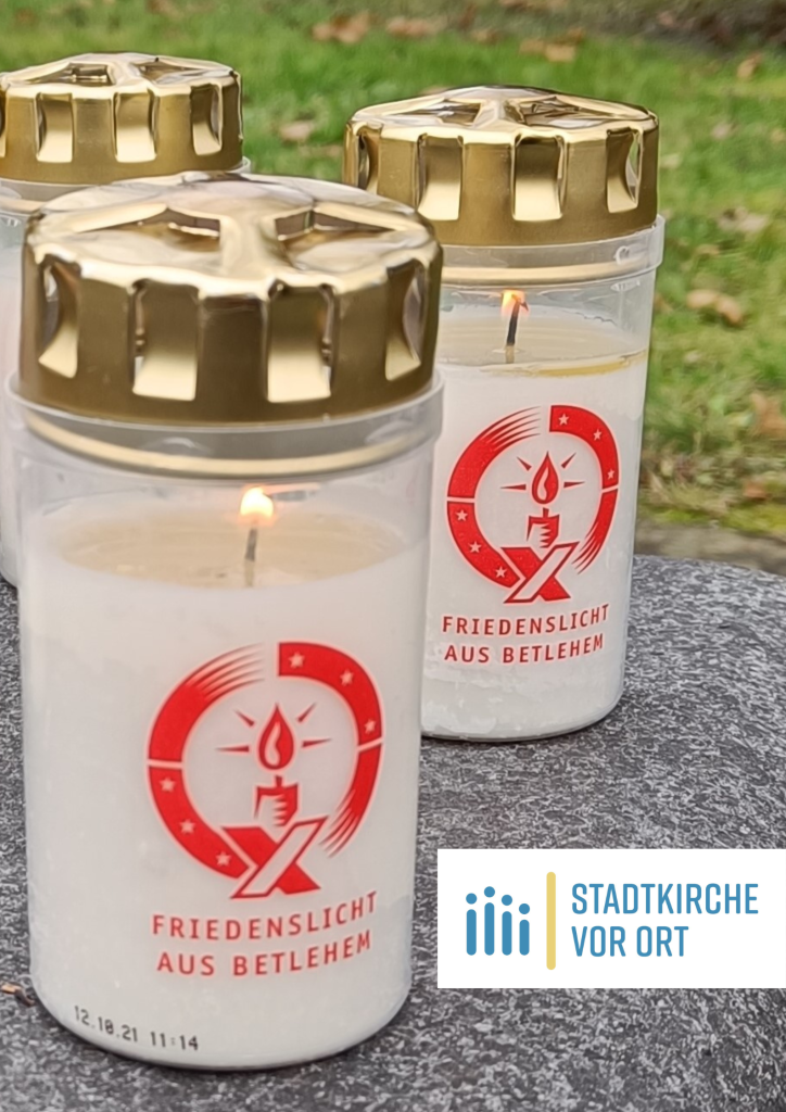 Die STADTKIRCHE HEILBRONN verteilt das Friedenslicht aus Bethlehem am Samstag, 20. Dezember von 14:00 – 16:00 Uhr am Haupteingangsbereich des Heilbronner Hauptfriedhofes. Friedhofsbesucher und alle Interessierten sind eingeladen das Friedenslicht aus Bethlehem abzuholen. Wetterfeste Lichtgefäße werden zur Verfügung gestellt.