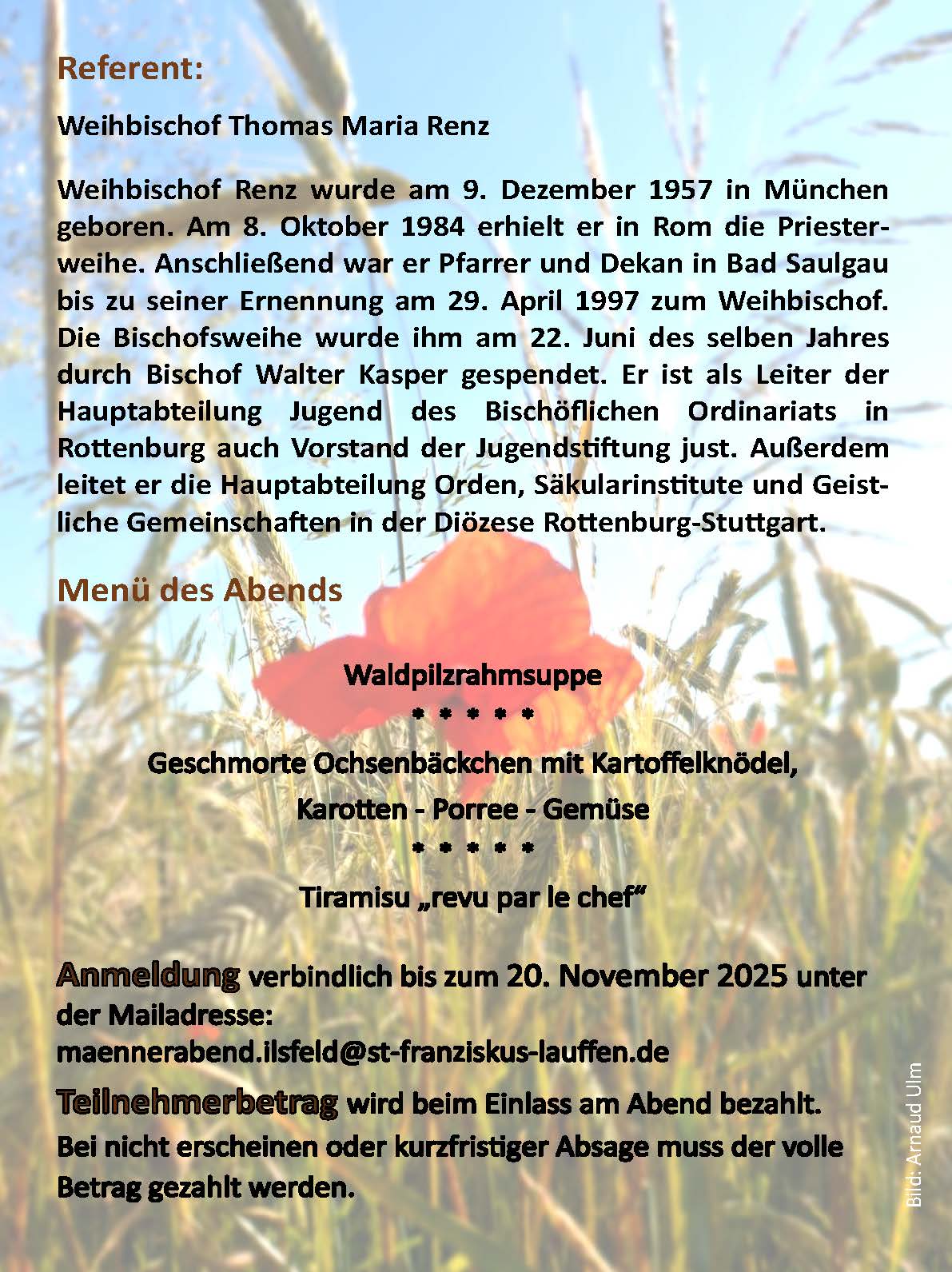 Eine verbindliche Anmeldung bitte bis zum 20. November 2025 unter der Mailadresse: maennerabend.ilsfeld@st-franziskus-lauffen.de