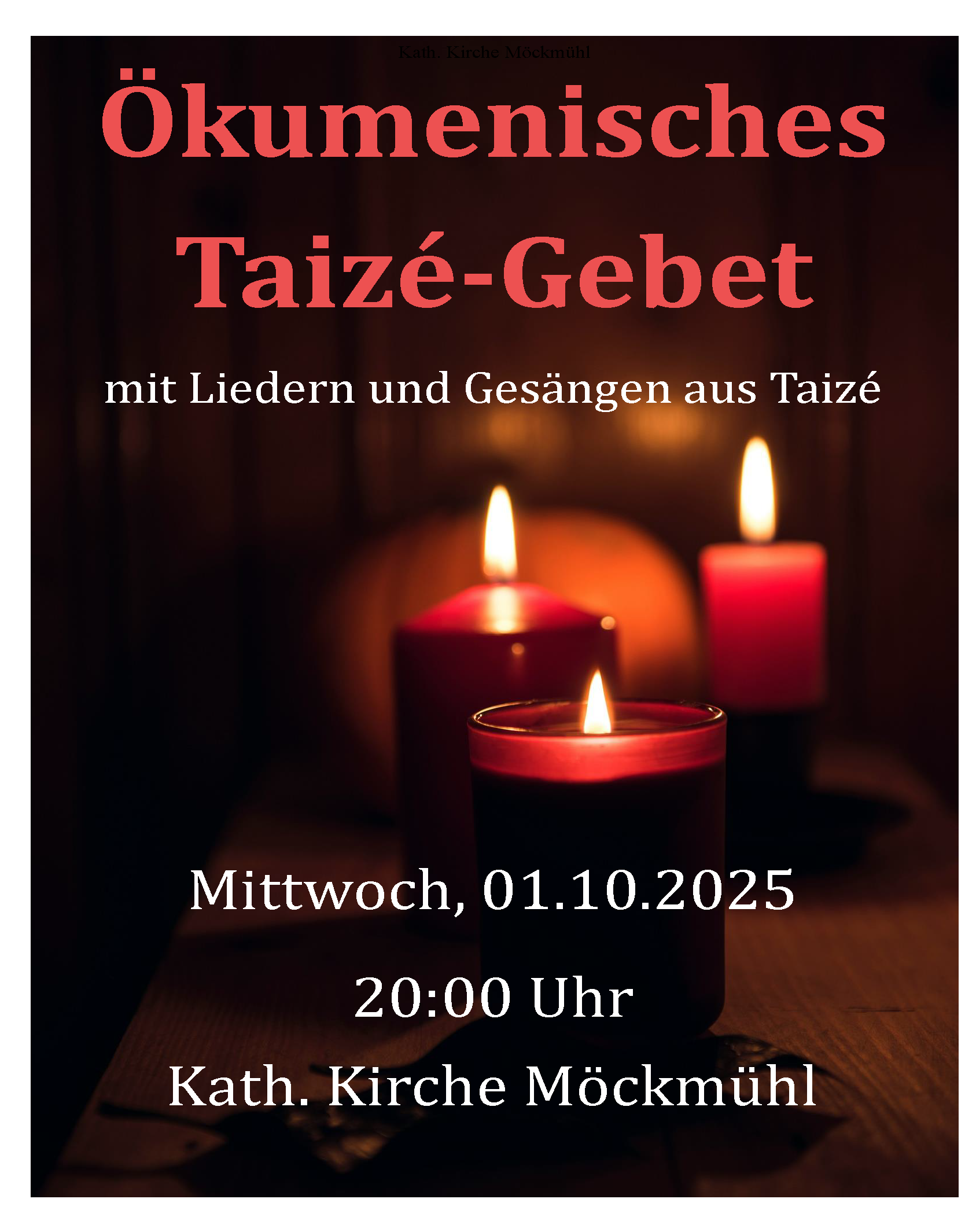 Herzliche Einladung zum ökumenischen Taizégebet am 01.10.25 um 20:00 Uhr diesmal in der kath. Kirche in Möckmühl.