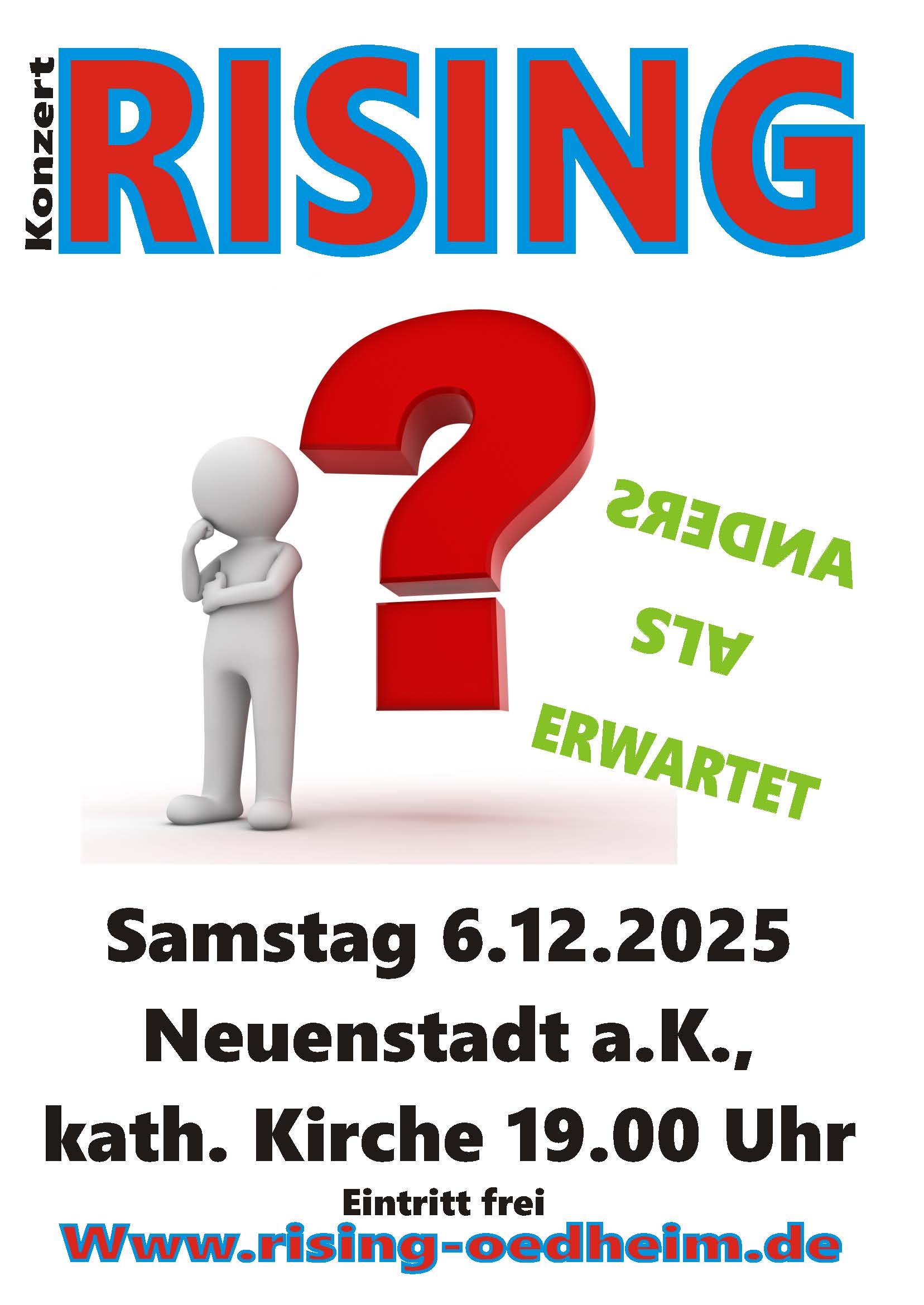 Auch dieses Jahr lädt RISING wieder nach Neuenstadt mit ihrem neuen Konzertprogramm im Advent „anders als erwartet“ ein.