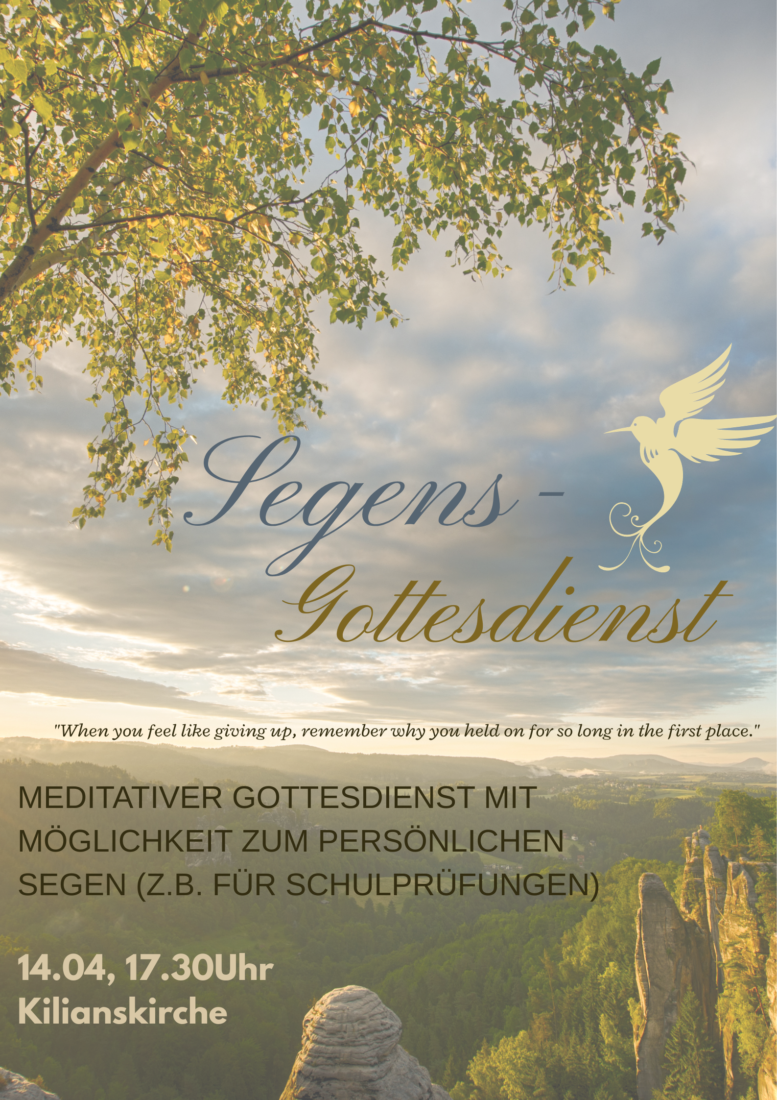 Meditativer Gottesdienst mit Möglichkeit zum persönlichen Segen (z. B. für Prüfungen)
